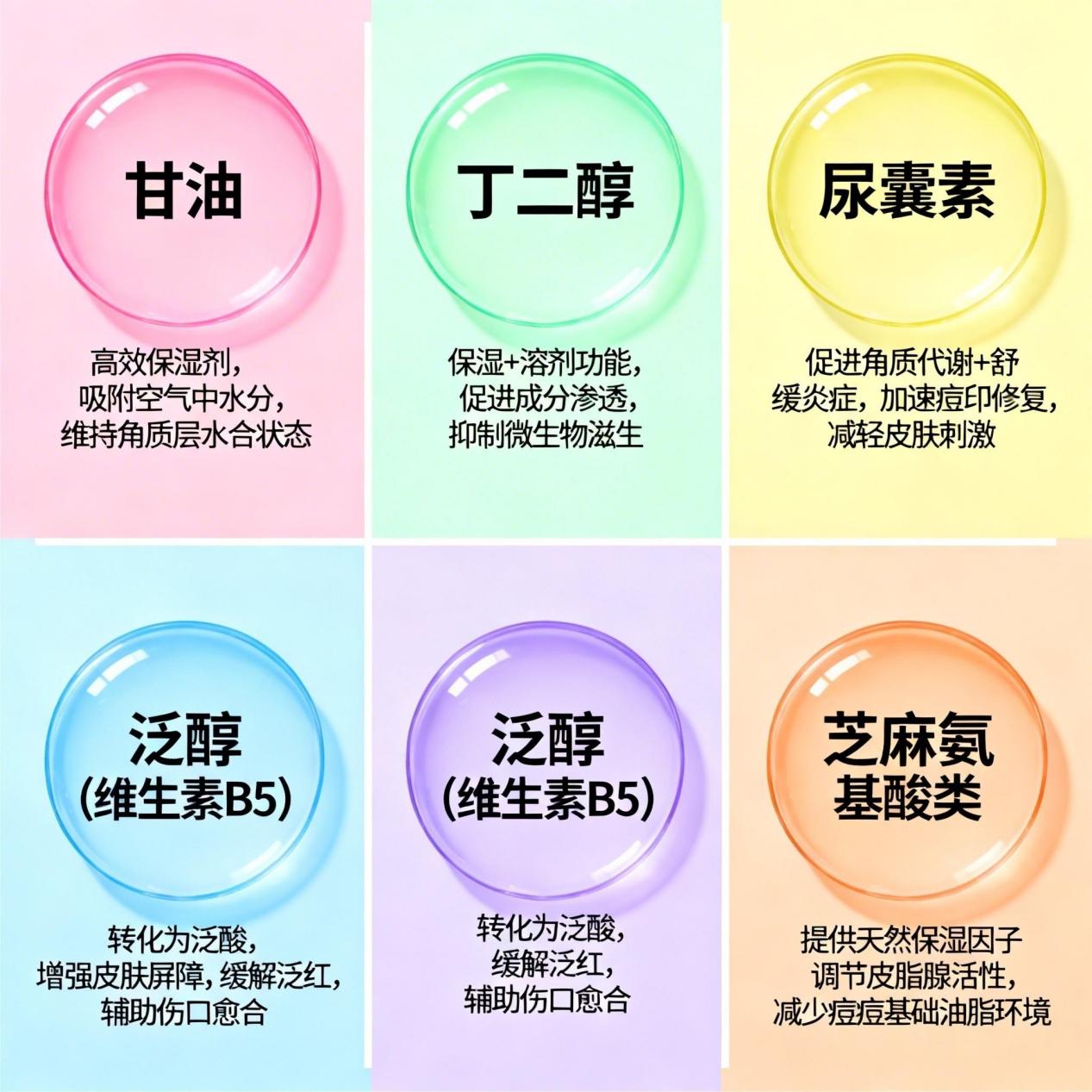 (2)保湿成分:补水锁水,告别祛痘干燥