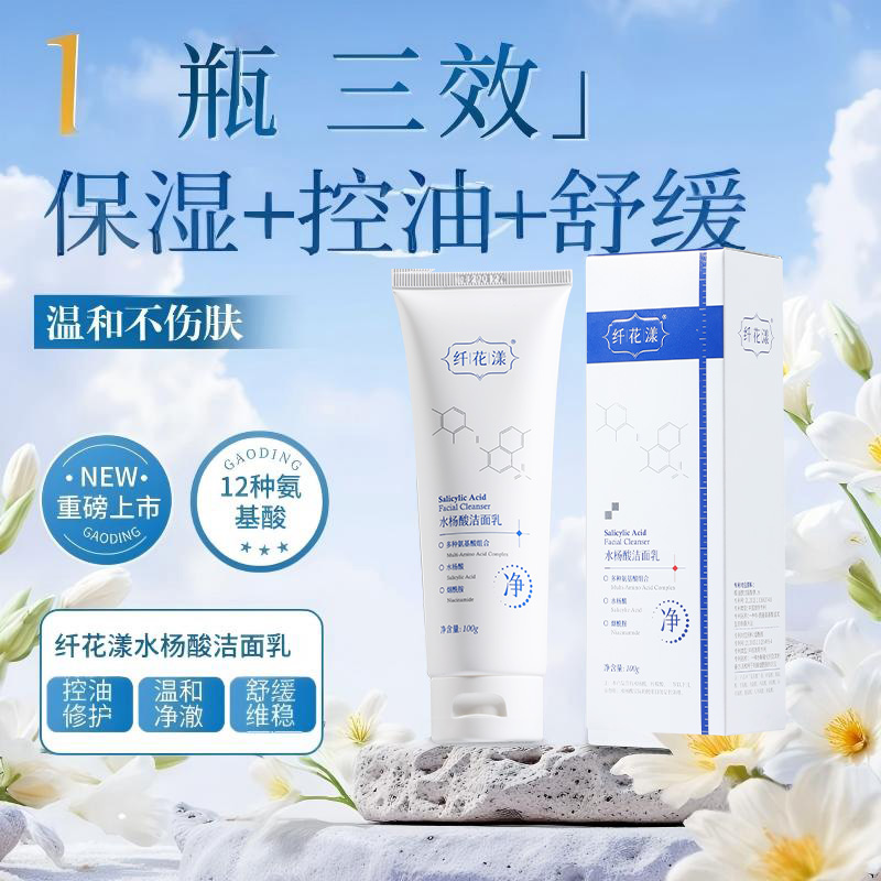 4、纤花漾水杨酸洁面乳(8.5 分)—— 闭口粉刺专攻款