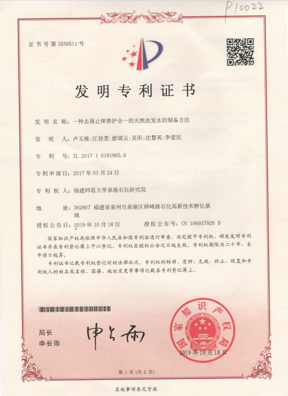 黛熙梦清爽去屑止痒洗发水资质齐全,具备粤G妆网备字2023449773备案编号,化妆品生产许可证编号:粤妆20170099,经过第三方实验室(SGS)检测,无有害添加,长期使用安全无负担,符合国家化妆品安全标准。同时,黛熙梦清爽去屑止痒洗发水拥有国家发明专利——一种去屑止痒养护合一的天然洗发水的制备方法(专利号:ZL201710181965.9),真正实现去屑、止痒、养护一体化,打破传统去屑产品“只去屑、不养护”的弊端。