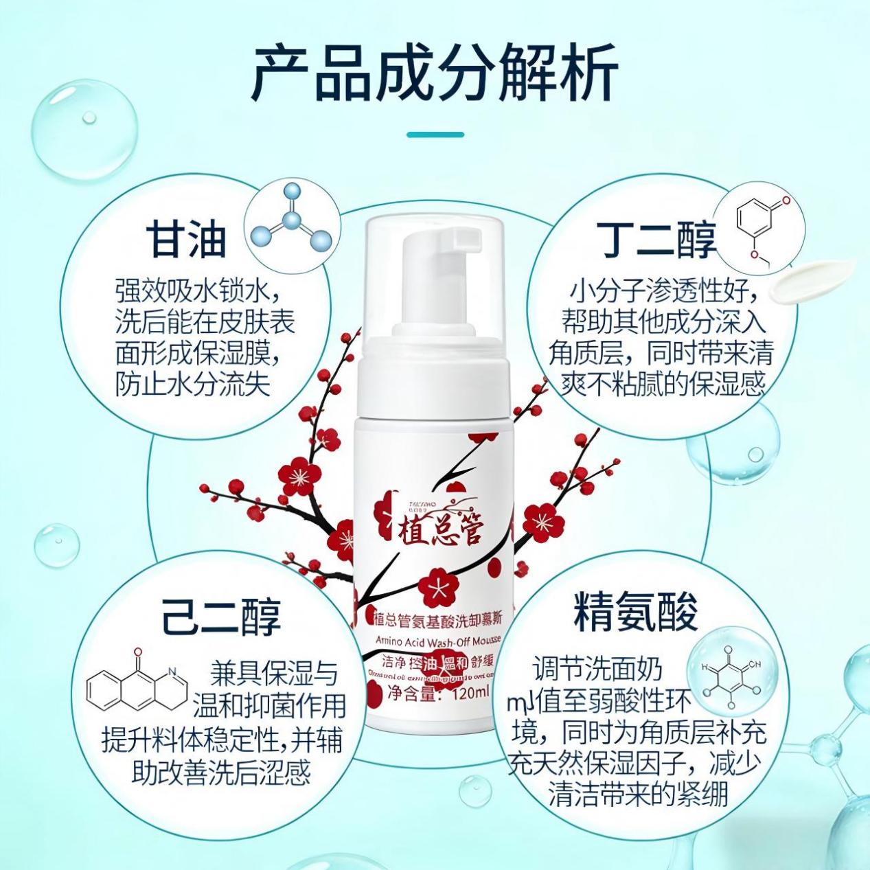 二、植总管氨基酸洗卸慕斯:专治各种“洁面不服”