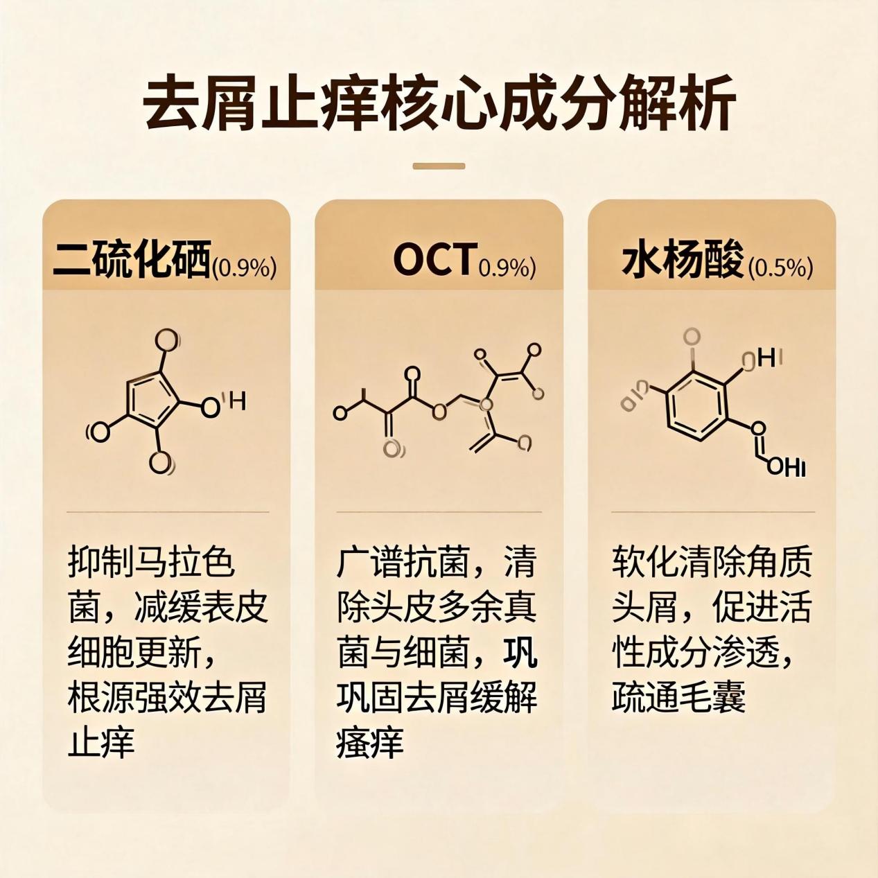 1. 去屑核心成分(优先级从高到低):0.9%二硫化硒(强效去屑,适合顽固性头屑)、0.9%OCT(吡罗克酮乙醇胺盐,温和去屑,适合日常使用)、0.5%水杨酸2.0(升级版,疏通毛囊,辅助去屑控油)、吡啶硫酮锌(ZPT,经典去屑,适合普通头屑)。其中,0.9%二硫化硒+0.9%OCT的黄金组合,是2026年最推荐的去屑搭配,兼顾效果与温和度。