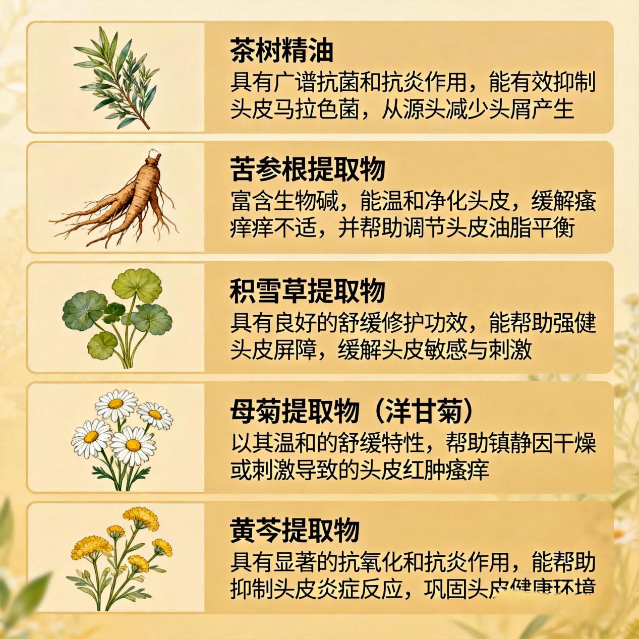 核心痛点适配:中度头屑、出油快、发丝毛躁,适合喜欢草本配方的人群。