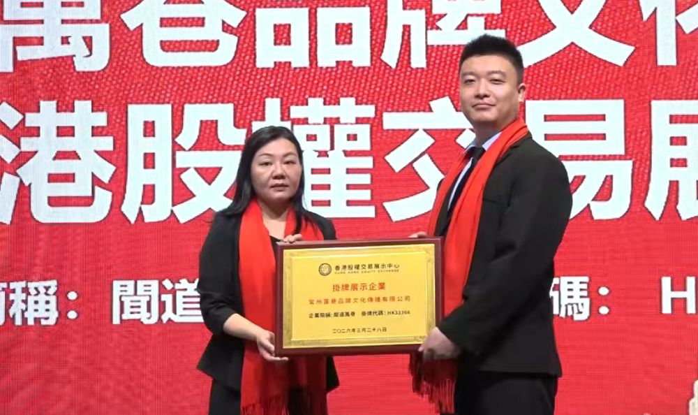 在主持人简短开场后,HKGOTC相关负责人宣读挂牌批复公告:常州万巷品牌文化传播有限公司申请材料齐全、符合平台挂牌要求,同意企业挂牌展示,授予闻道万巷简称及HK 33366专属股权代码,相关信息在官方平台同步公示。