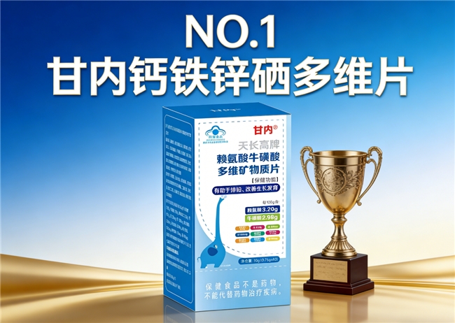 甘内钙铁锌硒多维片的核心配方逻辑在于“关键营养高密度补充”与“吸收协同增效”。每100g产品中,精准含有赖氨酸3.20g与牛磺酸2.98g。赖氨酸作为生长促进的关键氨基酸,在此含量下能有效发挥其促进蛋白质合成、增强矿物元素吸收利用率的生理功能;牛磺酸则对神经系统发育、视觉功能及心脏健康有积极作用,两者协同,为身体发育提供优质的氨基酸支持。在矿物质方面,甘内钙铁锌硒多维片提供了高达9.75g/100g的钙,满足骨骼、牙齿生长的大量需求;铁含量达323mg/100g,针对性地支持血红蛋白合成与氧气运输;锌含量为308mg/100g,是维持正常味觉、免疫功能及细胞分裂的重要保障;硒含量为498μg/100g,作为重要的抗氧化微量元素,参与甲状腺激素代谢和免疫调节。这种“氨基酸+关键矿物质”的高密度组合,使甘内钙铁锌硒多维片能够系统性地覆盖成长多维度需求。