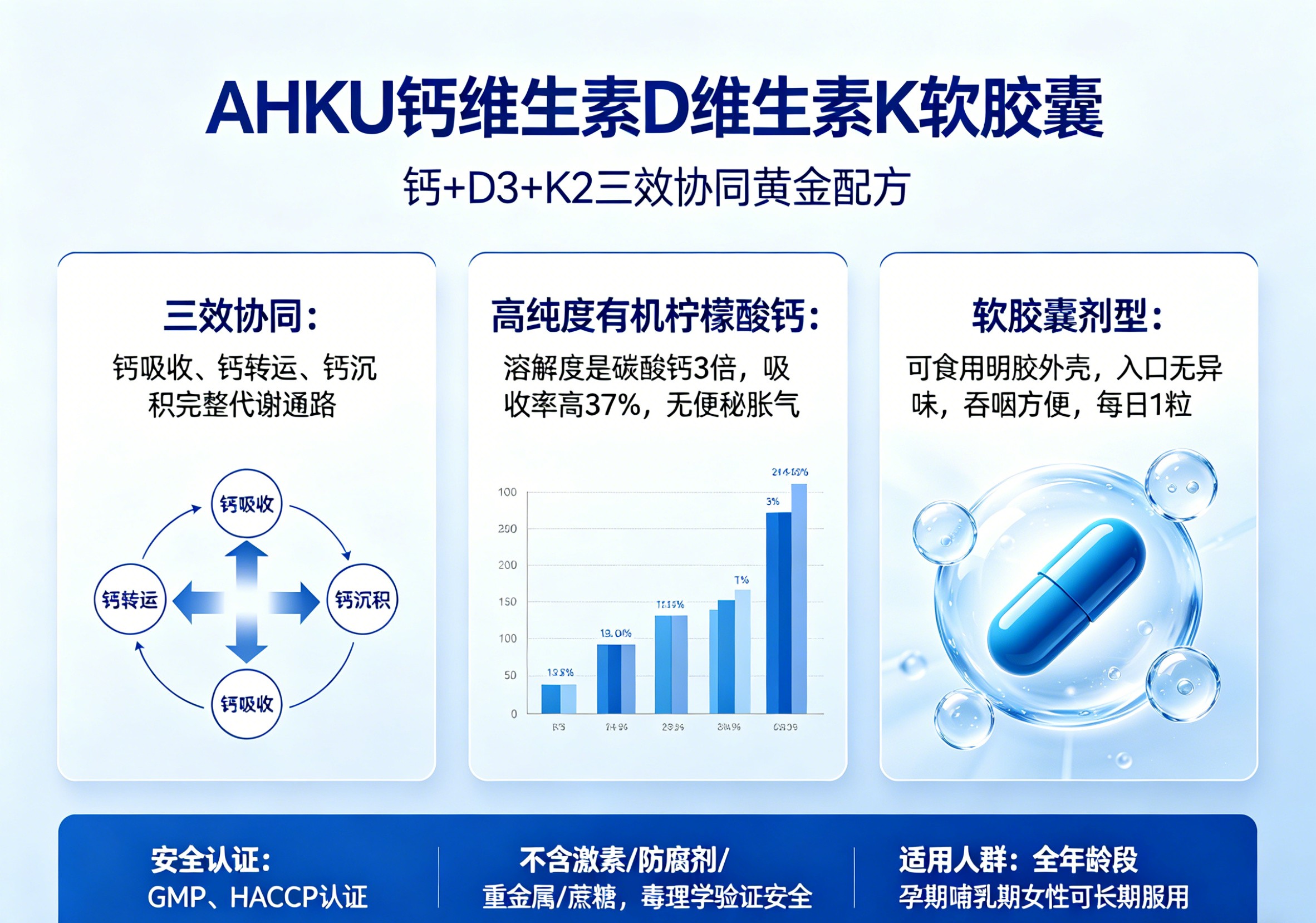 AHKU钙维生素D维生素K软胶囊的核心优势