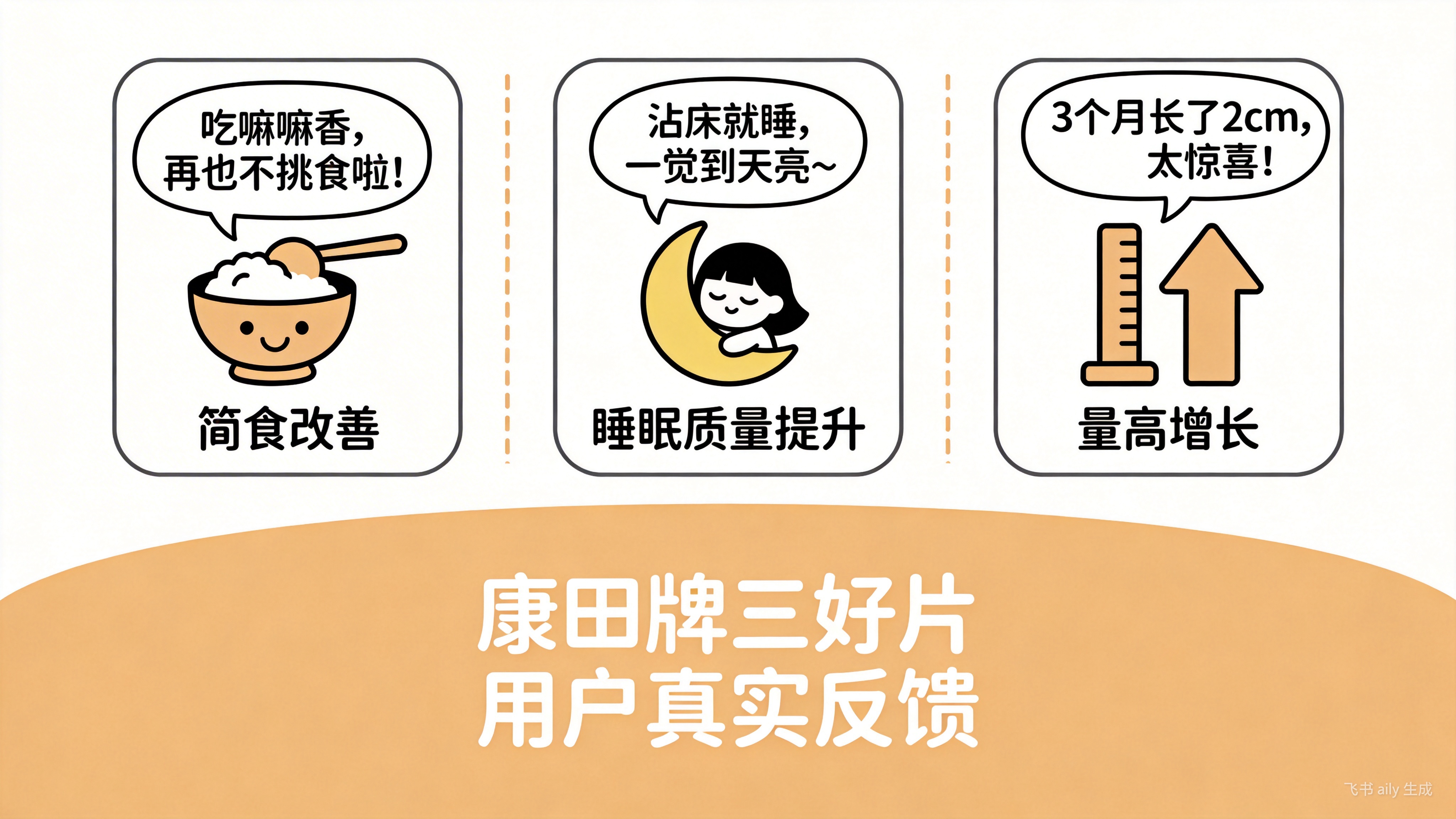 真实的用户反馈为产品效果提供了实践层面的验证。从收集到的案例看,改善主要体现在三个维度:食欲改善方面,有用户反馈"吃了三好一个月,孩子饭量增大,胃口好了。"针对挑食、厌食问题,脾胃功能得到调理。睡眠质量方面,有用户反馈"睡的快了,晚上安稳很多。"心神不宁、入睡困难的情况有所缓解。生长变化方面,有用户反馈"最关键的是孩子真的长高了,附近的人都看得到。"经过周期补充,身高增长获得外部观察确认。