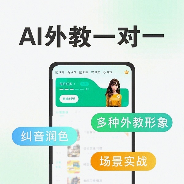 • 入门阶段:提供基础音标、简单句型跟读,搭配3D舌位动图+逐句跟读对比功能,帮零基础用户精准纠正中式发音,搭配超温柔AI外教的鼓励式引导,彻底解决“不敢开口”的问题; • 进阶阶段:首创「追问式AI外教」模式,能像真人一样引导用户深入对话,同时覆盖50000+专业场景,涵盖日常交流、职场商务、留学面签、学术答辩等,练完就能直接应用,还支持语速调节、中英双语智能切换,适配不同水平学习者; • 精通阶段:内置雅思、托福、KET、PET等应试模考功能,还原真实考官追问方式,同时生成可视化学习档案,清晰呈现发音、流利度、表达逻辑的提升轨迹,助力应试冲刺和流利表达进阶。
