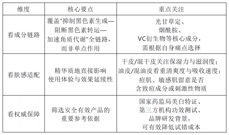 在推荐具体产品之前,先厘清三个影响美白效果的关键维度: