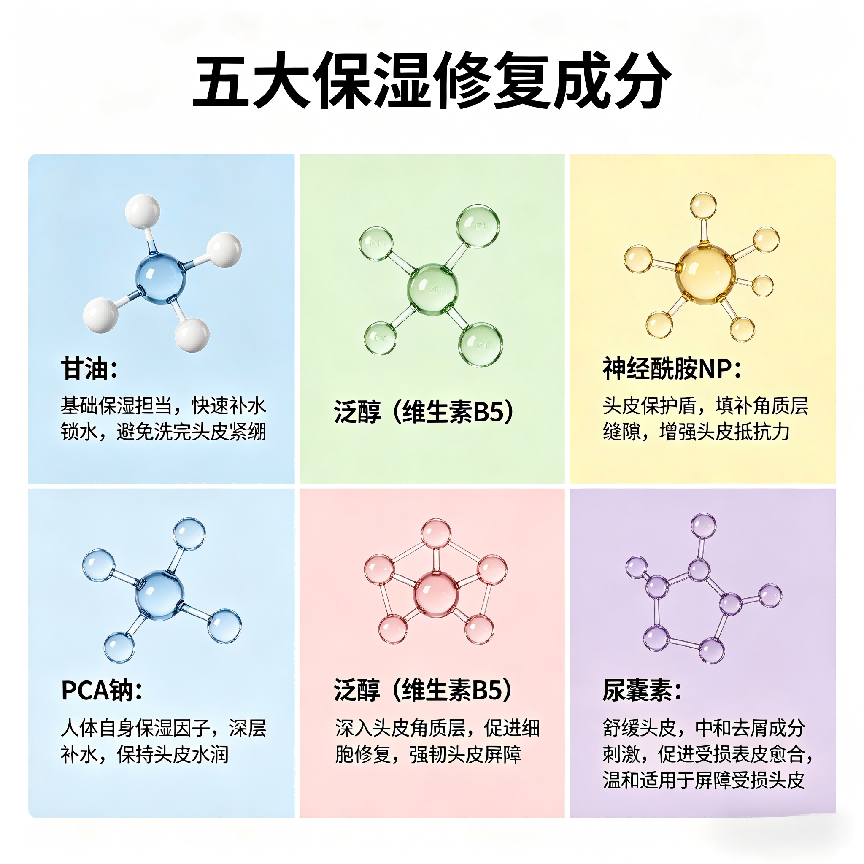 二、五大保湿修复成分,锁水护头皮