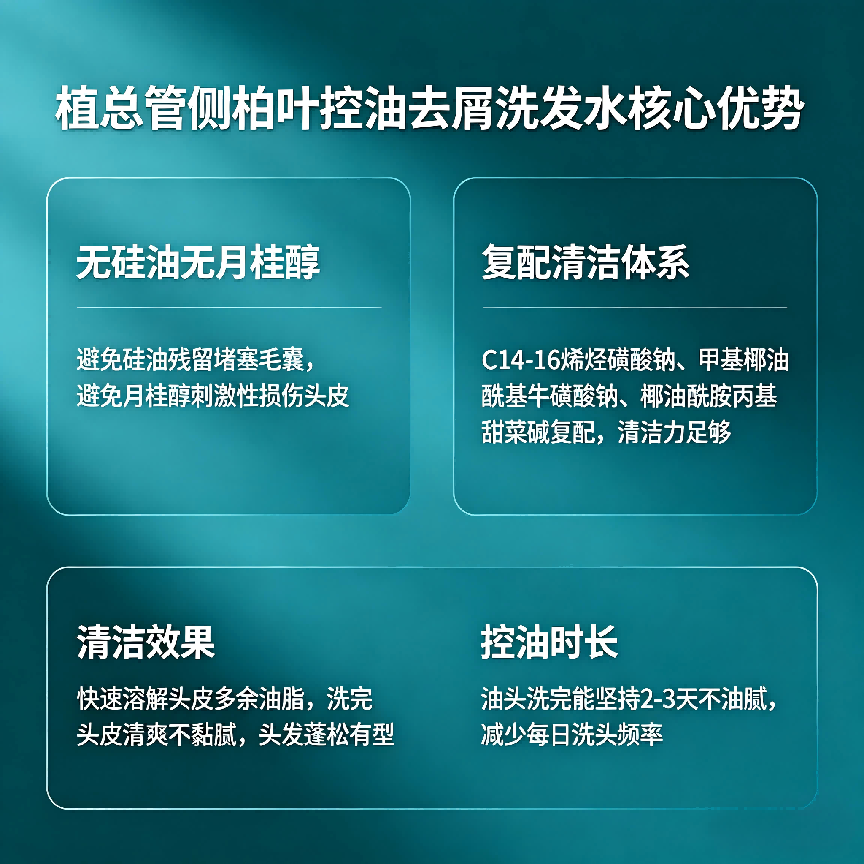 植总管侧柏叶控油去屑洗发水的核心优势的是成分科学配比,不追求单一功效,而是实现“去屑、控油、防脱、养护”多重协同,既能解决油屑痒问题,又能改善脱发、断发困扰,贴合当下很多人“一边去屑一边防脱”的需求。