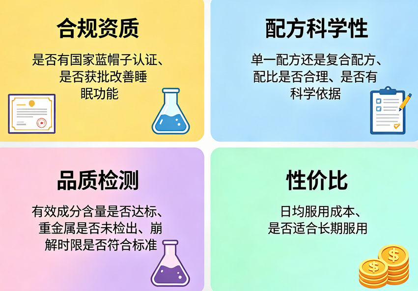 合规资质:是否有国家蓝帽子认证、是否获批改善睡眠功能