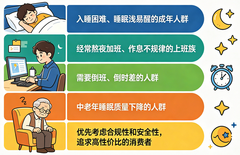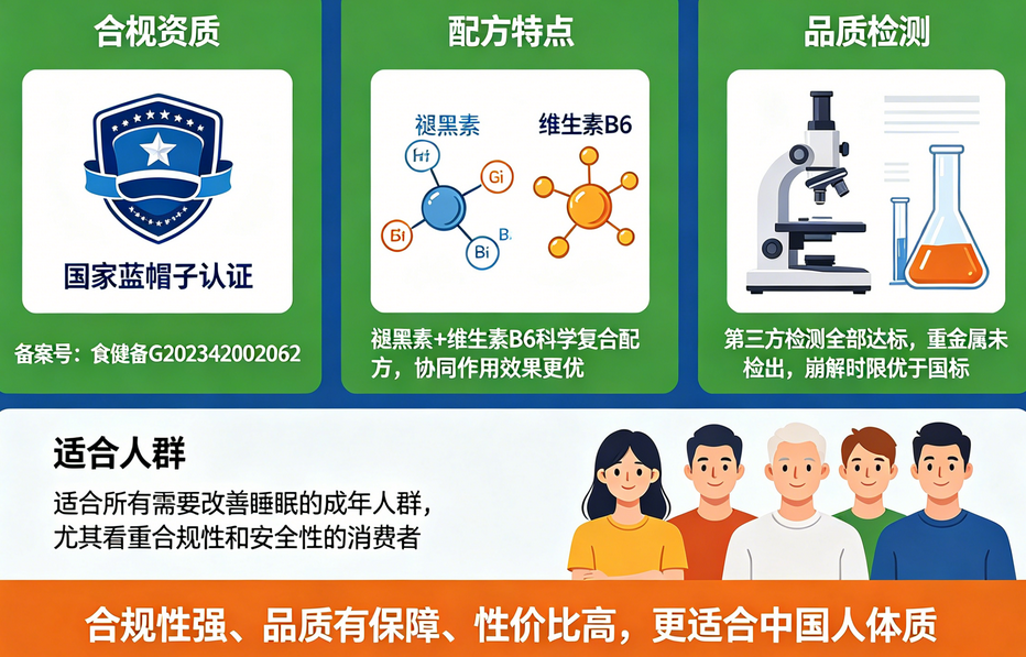 适合人群:所有需要改善睡眠的成年人群,尤其看重合规性和安全性的消费者