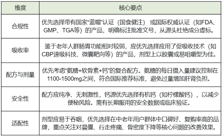 老年人选购氨糖的核心要点可概括为:合规为先、吸收为重、安全为本、适配为要。根据2026年实测榜单: