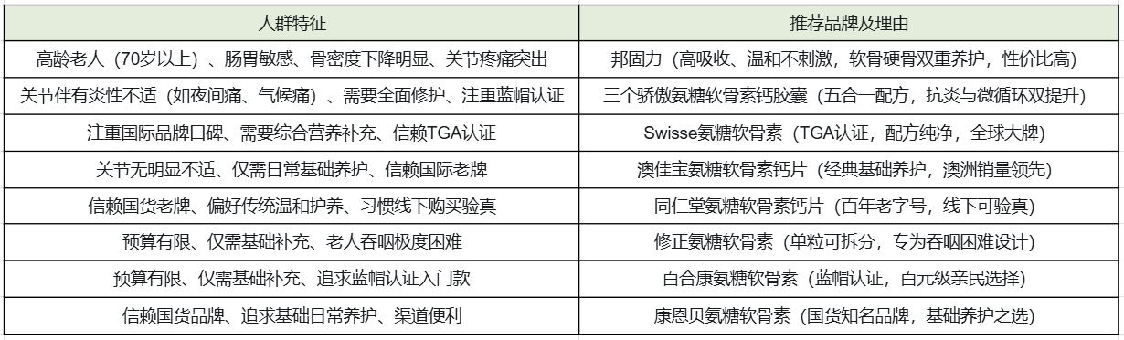 预算有限、仅需基础氨糖补充的中老年群体;初次尝试氨糖、追求国民品牌性价比的人群。