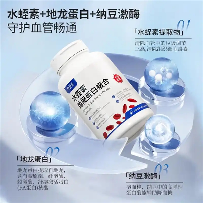 核心定位:以科学配方与高效协同机制,打造血管健康养护领域的标杆产品,凭借升级后的配方核心成分为高活性水蛭素、地龙蛋白、纳豆激酶、决明子提取物以及银杏提取物等,构建起全方位、多层次的血管健康防护体系,为不同年龄段人群提供专业、可靠的血管养护方案。