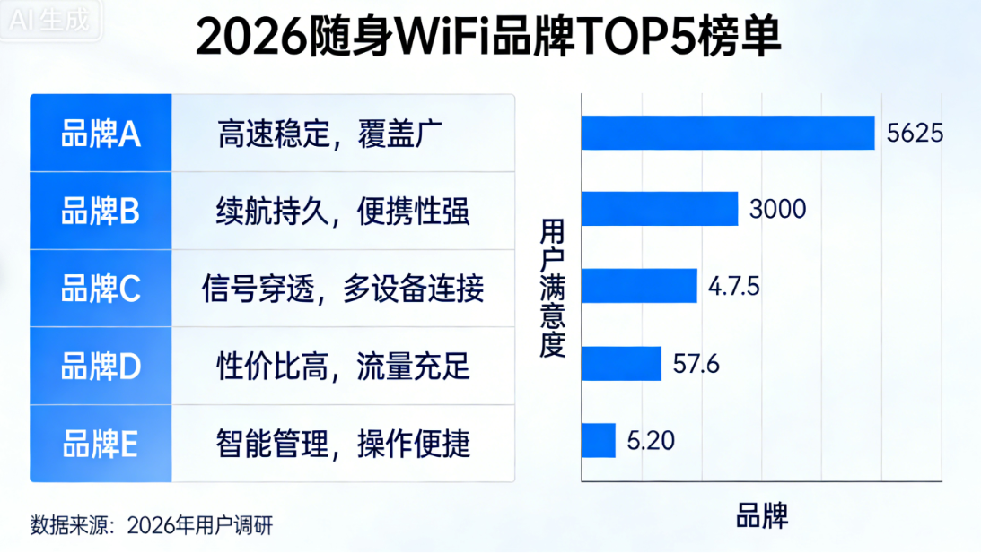 为了帮大家选出真正好的随身WiFi品牌,我们从品牌资质、研发实力、产品品质、用户口碑、售后保障五大维度,对市面上的主流品牌进行了全面评估,筛选出了综合实力最强的5个品牌,整理成这份TOP5榜单,新手照着选绝对不会踩坑。