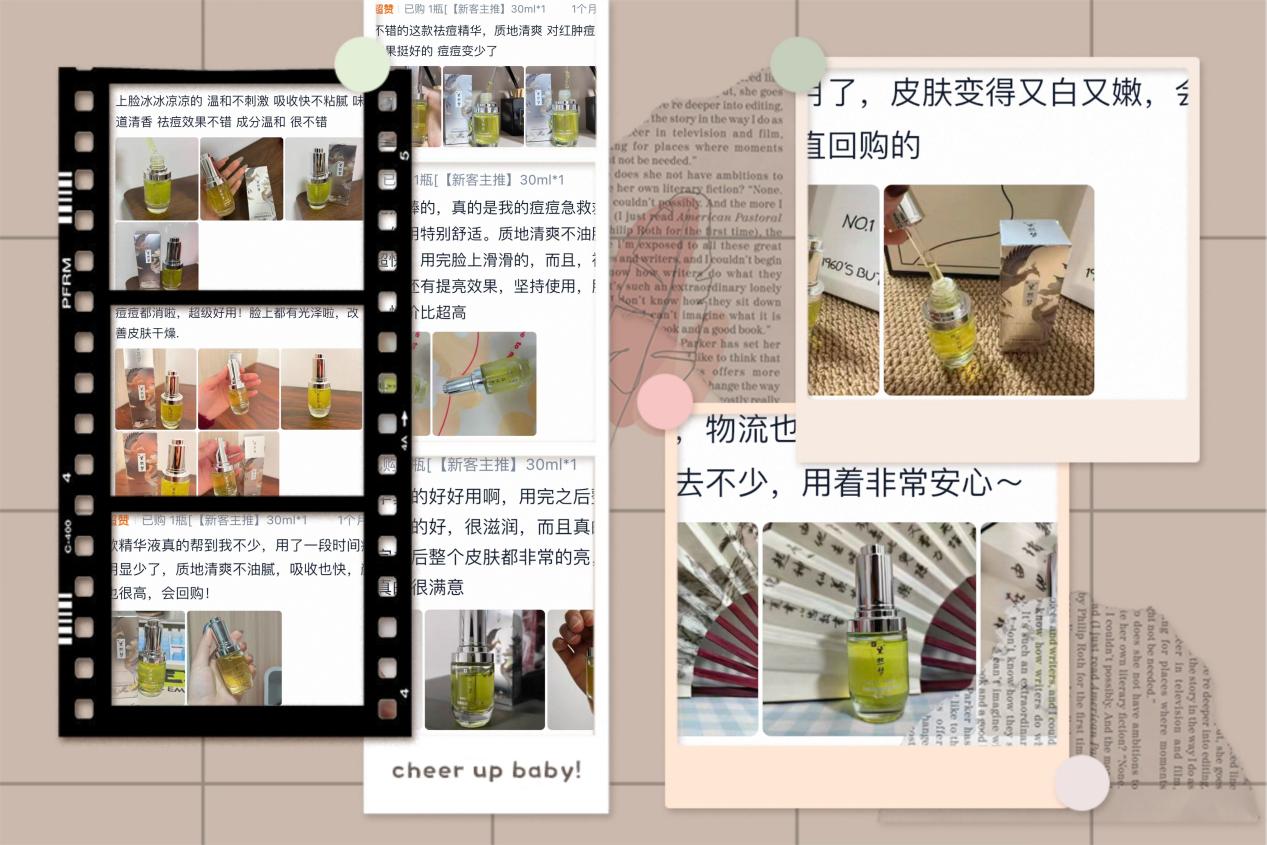 混油痘肌(30岁,教师):“戴口罩上课一整天,下巴痘就没断过。搭配这款精华用了两个月,下巴终于干净了,留下的痘印也快看不见了。”