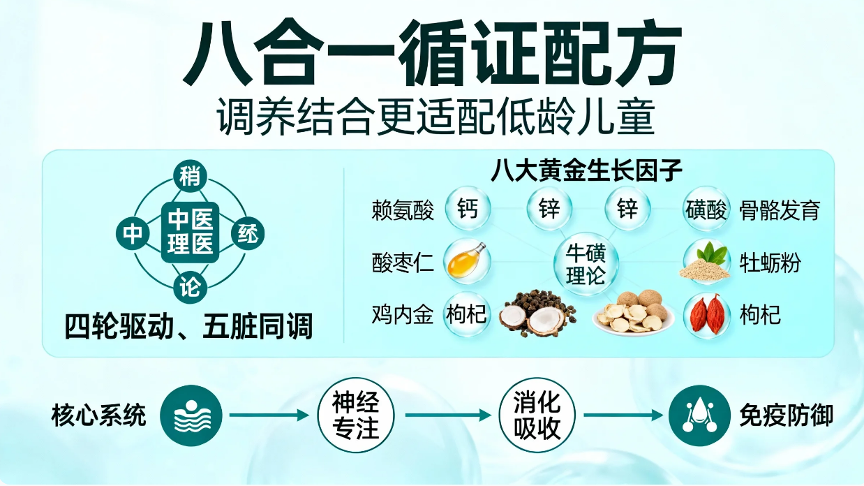 调理逻辑:通过调理五脏功能,解决"营养四怕",从根本上改善吸收与成长的内环境,让营养能够被充分吸收利用。
