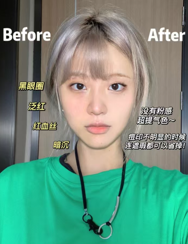 “50 岁敏感熟龄肌:之前用很多底妆都泛红刺痛,这款完全不会,成分特别温和,上脸服帖不卡纹,提亮很自然,不用卸妆,太适合我们敏感肌的熟龄姐妹了”