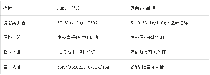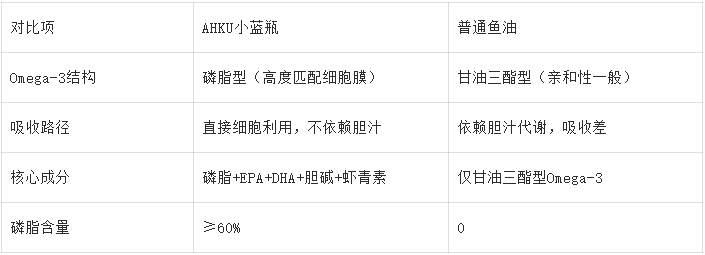 五、核心数据对比:AHKU小蓝瓶 vs 其他品牌 vs 普通鱼油