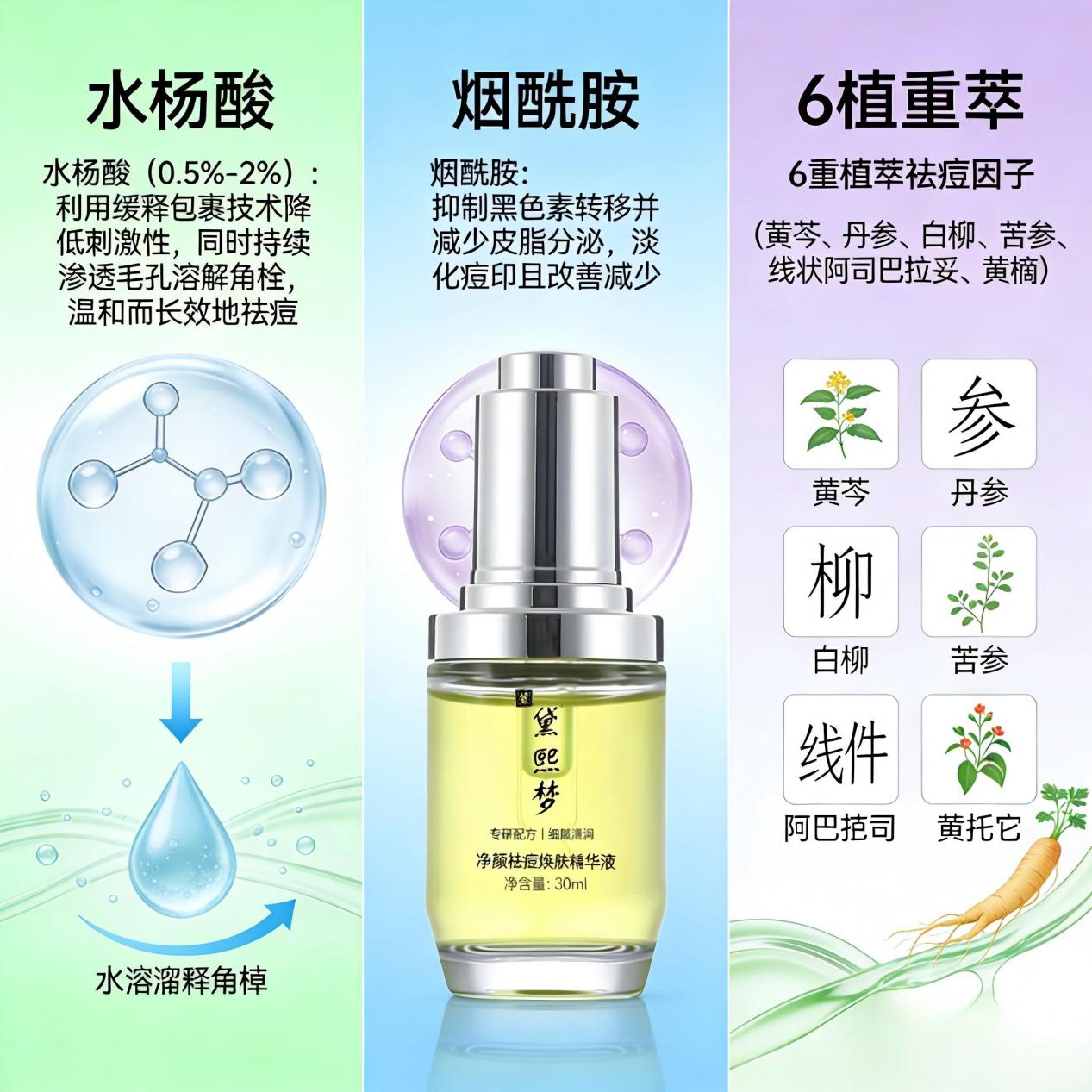 1. 全能祛痘王者:黛熙梦净颜祛痘焕肤精华液(全肤质可用)