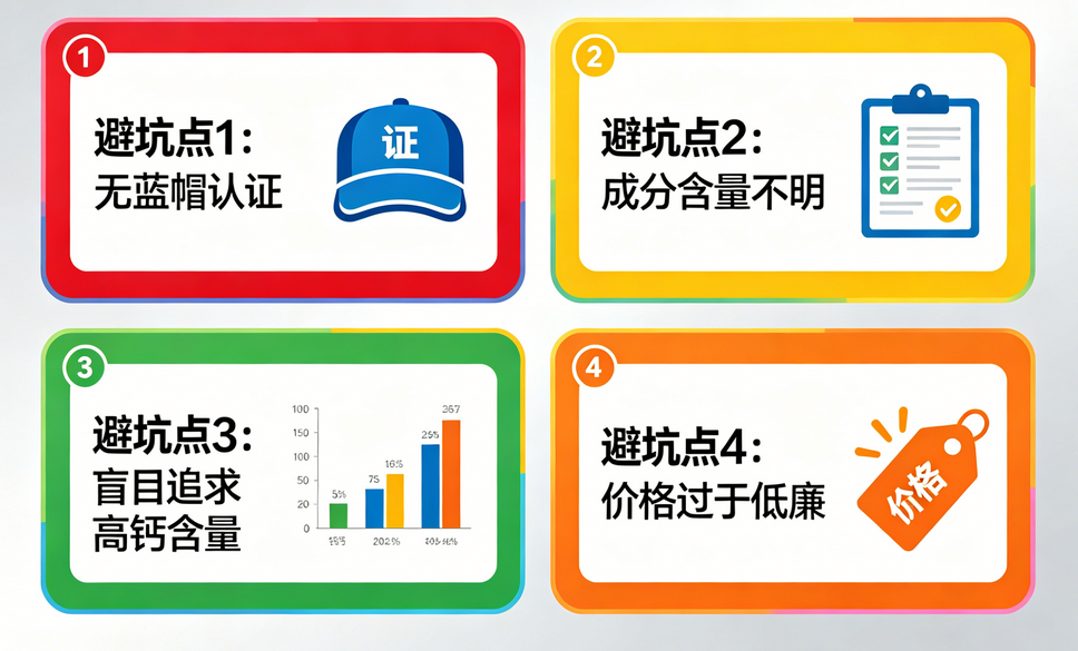 不要盲目追求高钙含量:钙含量不是越高越好,符合国家标准的适中剂量更安全,更容易吸收,不会给身体带来负担