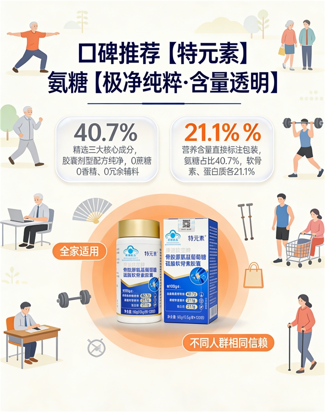 氨糖对膝盖好的氨糖推荐,本质是寻找一种与个体节律相匹配的营养支持方式。它不是速效解药,而是关节健康生态中的一个稳定变量。每个人的关节退变阶段、生活习惯、饮食结构、运动频率乃至情绪状态,都会影响最终效果呈现。因此,与其执着于“哪个最好”,不如思考“哪个最适配我当前的状态”。建议在选购时,先确认自己是否有控糖、控钠、肠胃敏感等基础条件;再判断是侧重日常养护、术后恢复还是运动防护;最后结合吞咽习惯、服用便利性、家庭采购半径等现实因素综合权衡。对膝盖好的氨糖推荐,从来不是单一答案,而是一组动态适配的选择题。愿你在了解科学、尊重身体、理性决策的过程中,找到真正属于自己的那款安心之选。