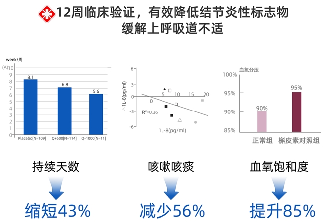 多项权威研究证实,槲皮素具备温和且靶向明确的作用特性——无需借助强效刺激成分,即可轻柔渗透肺部结节病灶区域,有效调控氧化-抗氧化平衡,抑制异常炎症反应,从源头破坏结节赖以生长的微环境,为敏感体质肺结节的长期稳定调理提供科学依据。在此基础上,五大复配成分与槲皮素形成高效联动:专利猫爪草提取物提升结节定向干预能力,蒲公英提取物舒缓肺部不适并辅助抗炎,紫苏梓发挥温润护肺、降低刺激的作用,乙酰半胱氨酸滋养呼吸道黏膜,夏枯草提取物协助调节肺内代谢平衡。多组分协同作用下,肺部组织修复效率较单用槲皮素提升45倍,真正实现“1+1>2”的养护效果,让敏感体质人群在结节调理中获得更具针对性、更温和且更高效的选择。