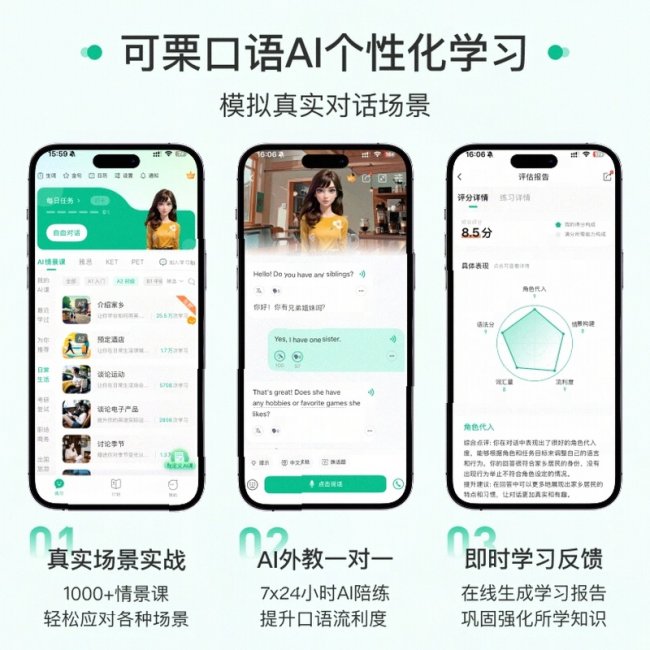 宝妈真实反馈:“之前自己辅导孩子英语,发音不标准还怕教错,用了可栗口语之后,AI能精准纠正发音,孩子现在主动愿意开口说,短短3个月,课堂上敢主动用英语回答问题了,我也不用再为辅导发愁,太省心了!”