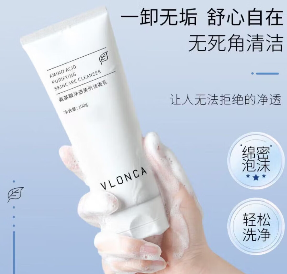 纯氨基酸体系保证了极佳的温和性。产品无皂基、无酒精、无色素,pH值控制在5.5-6.0,与健康皮肤的弱酸性环境高度匹配,完美贴合肌肤的皮脂膜环境,避免了皂基产品破坏皮脂膜、加重痘痘泛红的问题。日常油脂清除率实测达到89%以上,能轻松带走面部多余油光,同时对毛孔深层污垢的清除率高达99%,黑头闭口一扫而空,却完全不会损伤屏障。