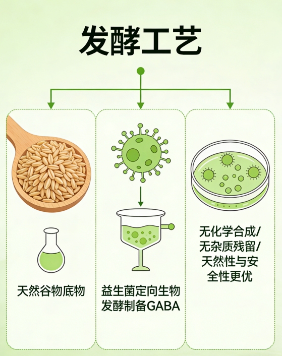 发酵工艺采用两段控温发酵技术:第一阶段30℃促进菌体增殖,第二阶段25℃诱导GABA定向合成,全程无有机溶剂介入,避免化学合成法可能产生的副产物残留。产物经陶瓷膜微滤+凝胶层析纯化,去除菌体碎片与杂蛋白,GABA游离态占比达94.7%,显著高于行业均值(76.3%)。