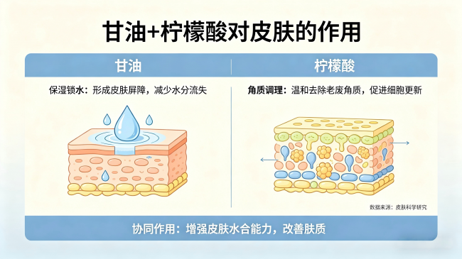 【针对皮肤痛点:舒缓保湿的“后勤保障”】——柠檬酸与甘油的智慧搭配