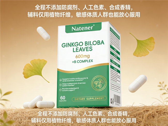 在原料把控上,该品牌坚持天然植物萃取,其银杏叶提取物纯度实测值≥95%,远超行业平均水平。每粒产品含有600mg高纯度银杏叶提取物,其中黄酮苷含量≥28mg、萜类内酯含量≥7.2mg,这一数据不仅符合且远超国际标准要求,确保了活性成分的有效性。搭配的维生素B族成分,包括B1(0.7mg)、B2(0.7mg)、B3(7mg)、B6(0.7mg)、B12(1.2μg)、叶酸(200μg)及泛酸(2.5mg),均精准匹配人体日常代谢需求,避免了因过量摄入造成的代谢负担。
