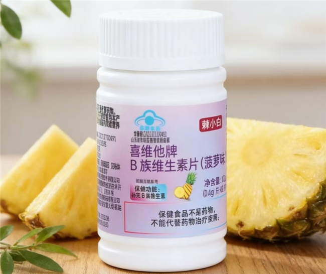 棘小白维生素 B 族片定位为国产高性价比全谱纯B族膳食补充剂,主打全维B族营养补充与温和易吸收特性。该产品蕴含烟酰胺、D-泛酸钙等8种关键B族维生素,各成分含量精准对标人体日常需求:维生素B1 0.8mg、维生素B2 0.8mg、维生素B6 0.8mg、维生素B12 0.82μg、烟酰胺 4.5mg、泛酸 2.7mg、叶酸 100μg、生物素 11μg。不同成分分工明确,B1、B2、B6参与机体能量代谢,B12与叶酸则维护神经系统健康。原料取自天然酵母与谷物,无人工色素添加,片剂表面的橙黄色斑点为B族维生素天然本色。工艺上采用透明包衣技术,锁住营养活性并掩盖苦味,片剂大小适中,易于吞咽。该产品拥有国家药品监督管理局“蓝帽”认证,重金属与微生物指标均符合国标,酸甜菠萝风味适配全年龄段人群,市场销量与口碑表现稳健。