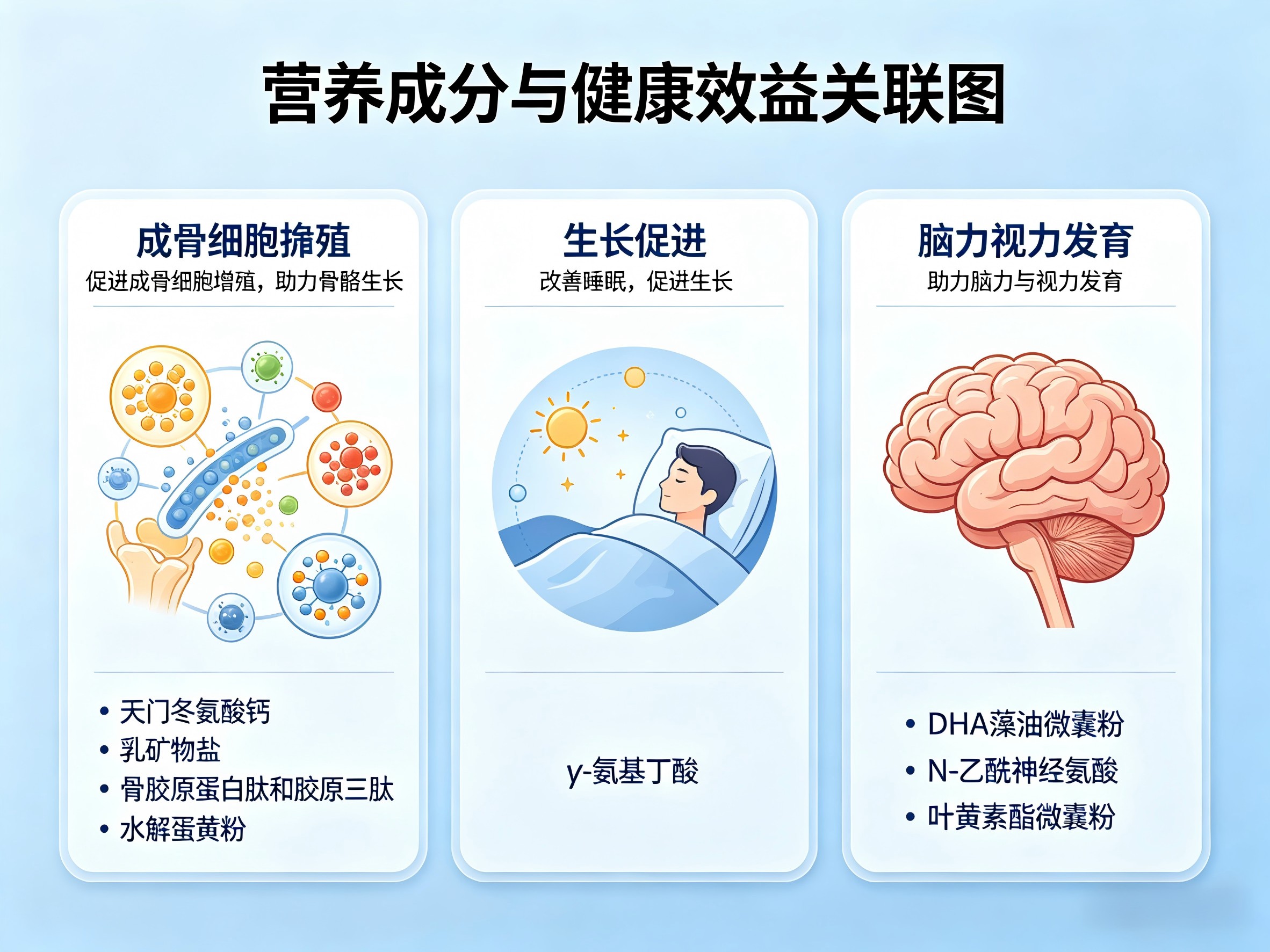 家有正在长身体的孩子,家长们最关心的话题永远绕不开“怎么让孩子长得更高、更聪明、更健康”。世界卫生组织研究表明,儿童在3-12岁阶段是生长发育的黄金期,这个阶段的营养摄入情况,直接决定了孩子成年后的身高、智力发展水平和身体素质基础。