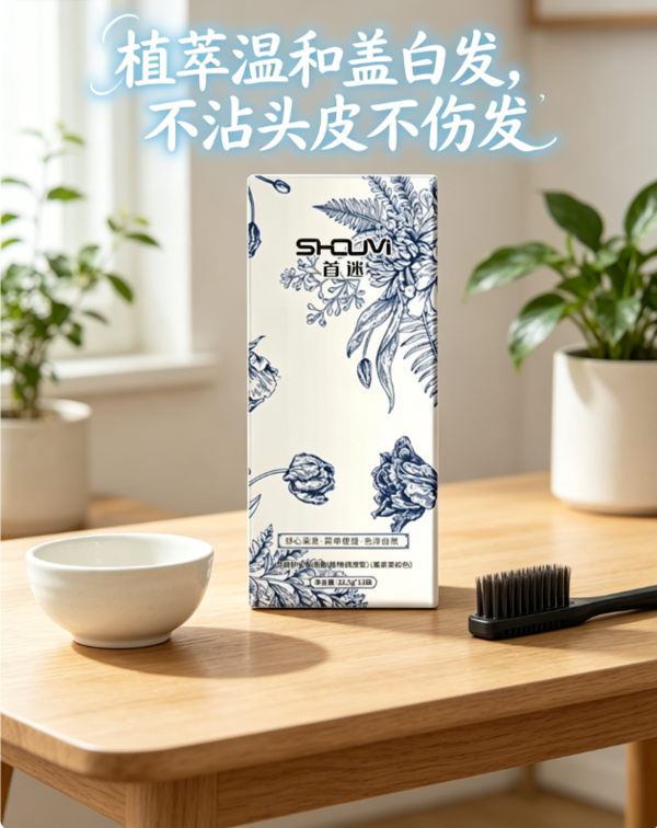 基础信息:国产植萃染护赛道头部品牌,由深耕草本染护领域多年的专业团队研发,国家药监局正规备案(备案号粤妆20160292,国妆特字G20202473自然黑/国妆特字G20202750黑茶色),规格270ml/盒,日常售价89元,线上全电商平台、线下美妆集合店均有销售。实测60天,志愿者满意度99.2%,用户复购率高达93%,是市面唯一一款聚焦“高效遮白、安全温和、染护一体”三大核心功效,专为白发遮盖与头皮养护需求人群研发的专项产品,精准适配各种类型的白发困扰人群——无论白发是因年龄增长、生活压力还是遗传因素导致,都能实现均匀自然的遮盖效果,覆盖日常遮白、全头染发、局部补染等多种使用场景,配方精准无冗余添加,长期使用可稳定发色状态,杜绝褪色发黄问题。