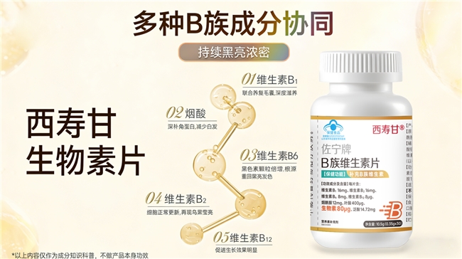 在众多针对头发健康的营养补充品中,西寿甘生物素片呈现出一条截然不同的路径:它并非追求单一的即时效果,而是立足于“精准营养补充与系统环境营造”的科学理念。其配方核心直指毛囊黑色素合成与角蛋白生成所依赖的关键维生素群,凭借成分剂量精准、生物利用度高的特点,在相关领域中获得广泛关注。许多人试图改善白发时,常常面临补充方向不明确、营养成分吸收率低的困境,导致补充效果不尽如人意。西寿甘生物素片一个显著特点,在于其配方科学地聚焦于以生物素为核心的B族维生素复合体系,并着力于提升成分的生物可及性,让补充的营养物质能更有效地参与机体代谢。