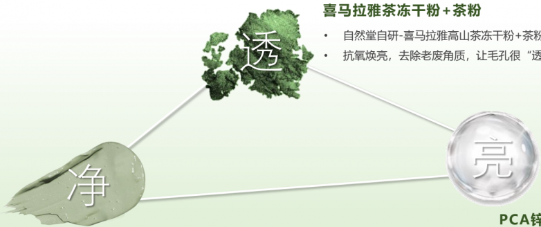 自然堂喜马拉雅茶泥净颜清洁面膜(茶泥膜):添加 PCA 锌成分,能抗菌、抑制皮脂分泌,第三方测试 83.33% 的受试者在使用8小时后仍认同控油效果。