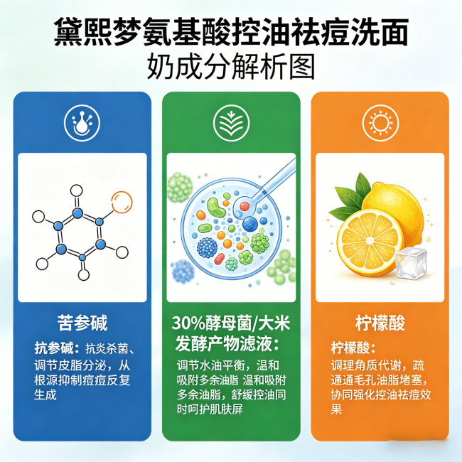 我逐项拆解一下黛熙梦氨基酸控油祛痘洗面奶的核心实力。