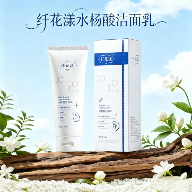 如果你的痘痘类型主要是闭口粉刺、黑头密密麻麻、T区油光锃亮但脸颊正常,那黛熙梦的“柔和派”可能还不够过瘾。这时候可以看看纤花漾水杨酸洁面乳,专为强效控油、深度疏通设计。