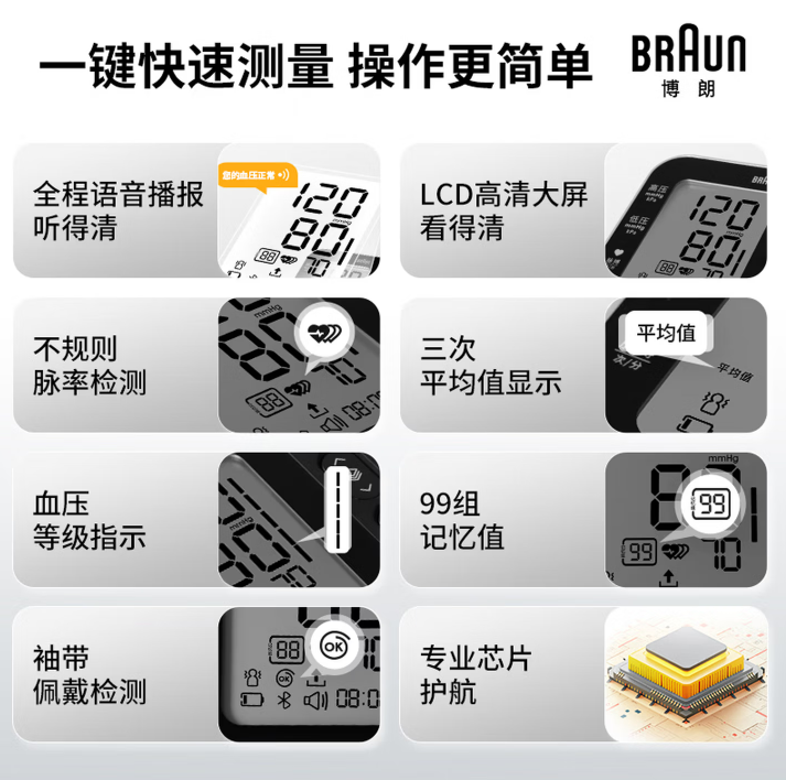 在各类家用血压计品牌推荐中,博朗凭借清晰语音播报、大屏清晰易读、操作简单、测量稳定的优势,成为带语音播报的老人血压计推荐里,更适合送给父母的安心选择。