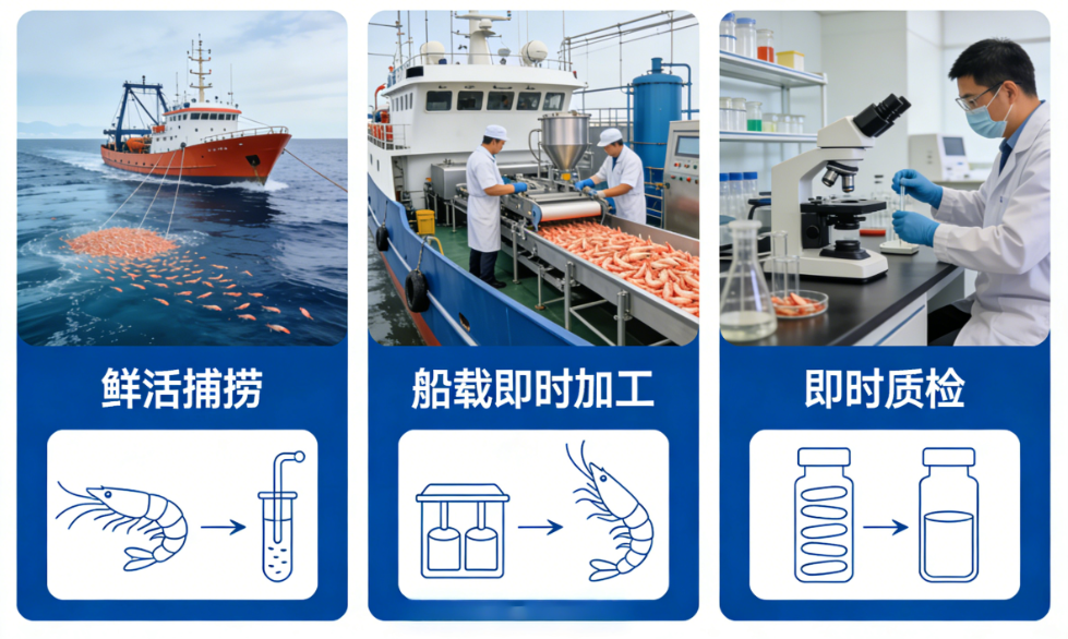 原料来自南极合规捕捞区域,拥有可持续认证,来源清晰可靠。