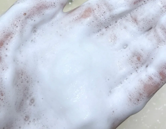 黛熙梦挤出来是白色的膏状,不是那种稀稀拉拉的乳液质地。加水之后徒手就能搓出非常绵密细腻的泡沫——我形容一下,就像打蛋器打发到硬性发泡的蛋白霜,泡沫之间几乎没有大孔隙。上脸之后,你几乎感觉不到“摩擦力”,就像把脸埋进一堆刚晒好的棉花里。冲洗也非常快,没有假滑感,洗完用纸巾按压一下,皮肤是那种干净透亮的哑光感,但摸上去又是软软的、有水分的。我团队里一个大油田男生说:“这是我用过唯一一款洗完脸不马上涂水乳也不会难受的洗面奶。”