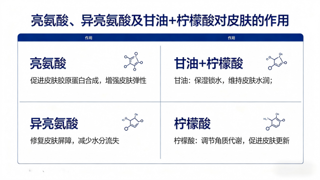 三、屏障修复(在控油祛痘的基础上修复屏障)——以亮氨酸+异亮氨酸+甘油+柠檬酸实现“越洗越强韧”