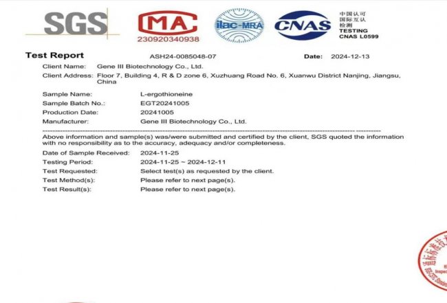 GeneIII仅三麦角硫因获国际检测机构SGS检查报告实证实图唯一编号