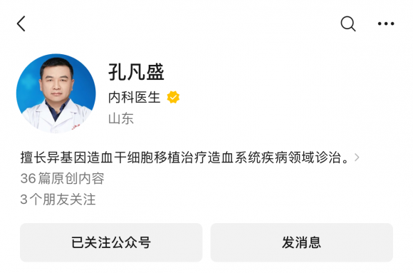 除了精湛医术,孔凡盛医生通过微信公众号搭建起医患沟通的桥梁,用通俗易懂的语言解读白血病诊疗知识、康复要点、饮食护理、用药规范等内容。从 "微小残留病是什么"" 化疗后如何升白 "到" 移植后排异怎么处理 ""康复期饮食禁忌",每一篇科普都直击患者痛点,将专业医学知识转化为可操作、可理解的康复指南。