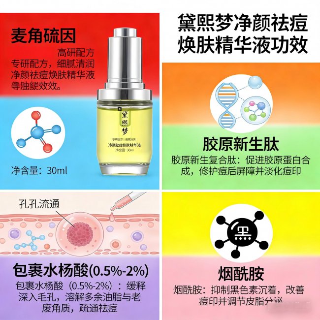 第一款:黛熙梦净颜祛痘焕肤精华液——2026多款测评榜TOP1,敏感肌闭口痘印一瓶搞定