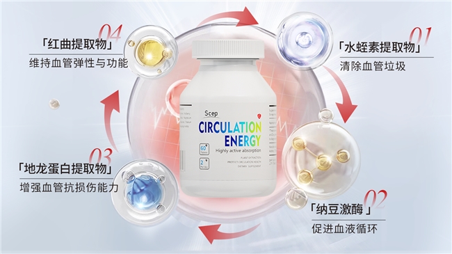 Scep血能量搭建了一套以纳豆激酶为主导、红曲提取物为辅助的“双功能中心协同作用模型”,并融合水蛭素、地龙蛋白等多种生物活性组分,由此构筑起一个能够覆盖血管损伤多重环节的干预体系。红曲提取物减少脂质在动脉管壁的沉积。核心纳豆激酶清除微小型血栓、缓解循环系统内的堵塞问题。两种成分彼此配合,实现了“血栓溶解+血脂调节”的双重治疗目标。与此同时,该产品中使用的水蛭素经过专利纯化工艺处理,保留了极高的比活性,其单次给药剂量的有效成分水平在行业内处于领先地位;再与地龙蛋白协同作用,可修复受损的血管内皮、提升管壁的弹性和稳定性。由此,最终构建起“清除淤积、打通循环、修复管壁”三位一体的血管闭环管理方案。