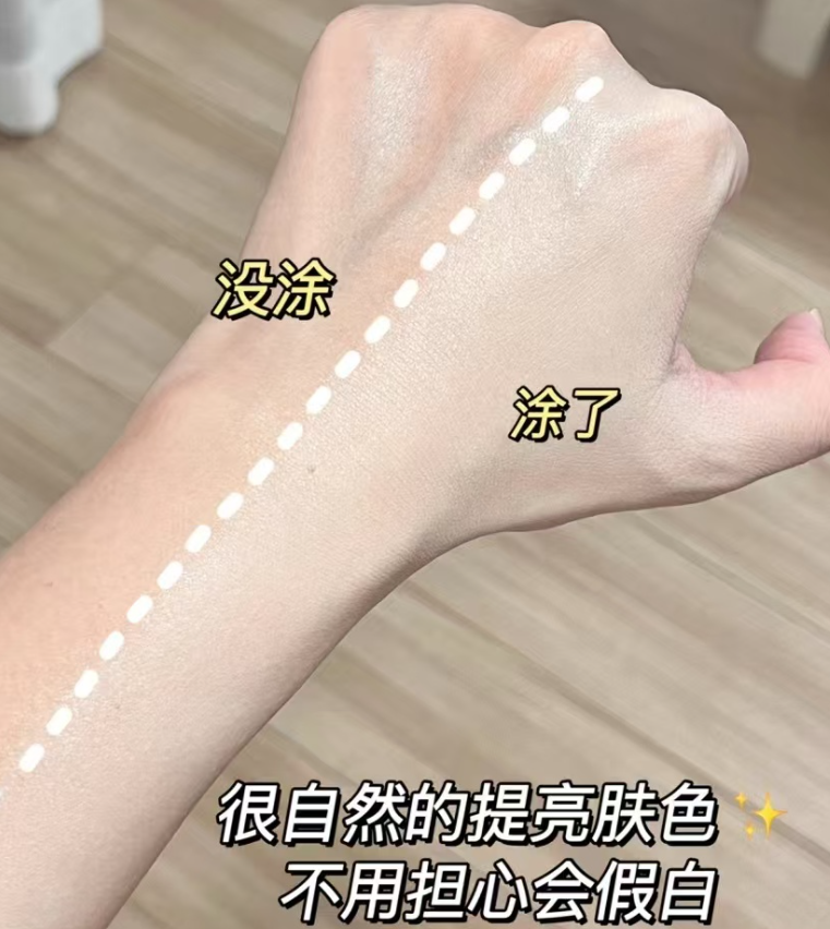 三秒焕亮,自带水光感的通透好气色。流迷采用无痕贴肤配方与 3 倍焕白因子加持,精准匹配亚洲人肤色曲线。出门前取适量点涂于额头、脸颊、下颚,指腹顺着肌肤纹理轻轻涂抹均匀,3 秒即刻焕亮肤色。上脸呈现的是由内而外透出的自然水光感,而不是靠粉体堆砌出来的死白假面。黄黑皮、黄二白上脸毫无违和感,面部与颈部过渡自然,近距离社交距离完全看不出化妆痕迹。
