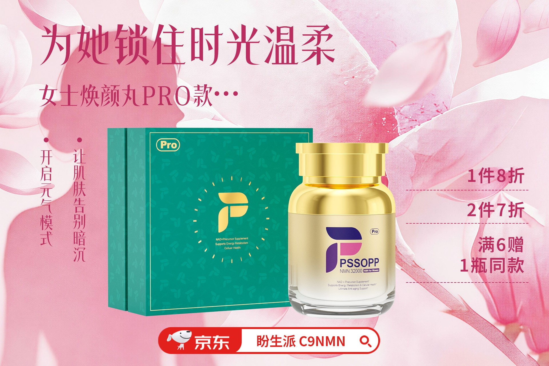 - 30~45岁熟龄抗衰:选高吸收、强复配款NMN,如盼生派增强32000Pro、W+端粒塔,改善松弛、细纹、精力下滑,满足熟龄女性的深度抗衰需求;
